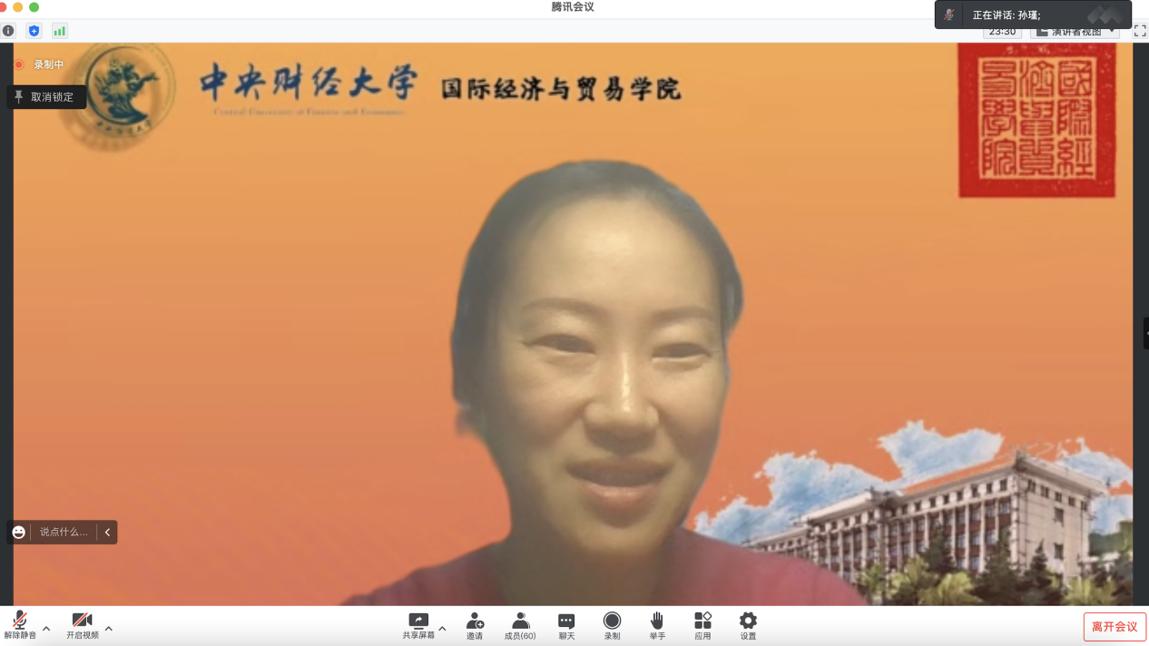 随后,孙瑾教授对马述忠教授的报告做了总结,并对今天的第二位主讲人崔淼教授进行了介绍并对她的到来表示热烈欢迎。