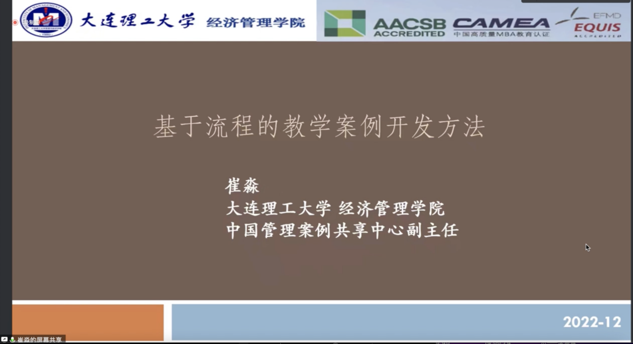 崔淼教授此次主要聚焦于教学案例,对《基于流程的教学案例开发方法》进行报告与分享。报告由教学案例/研究案例与商业案例的比较以及教学案例的采编两个部分组成。