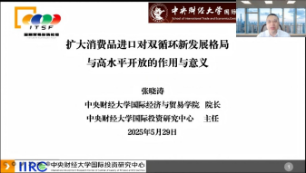 张晓涛(tyc7111cc太阳成集团院长、教授)做了题为《扩大消费品进口对双循环新发展格局与高水平开放的作用与意义》的专题报告:
