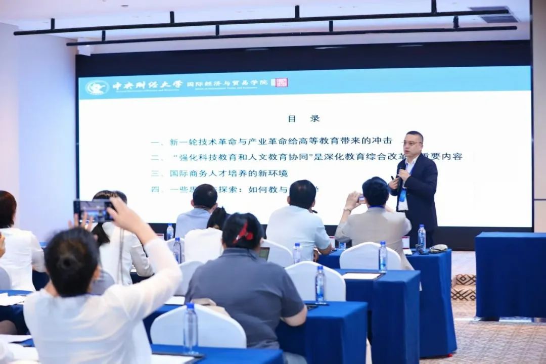 院长张晓涛教授参加了此次大会,作为全国MIB教指委委员参加了教指委年度工作会议,并在平行论坛环节做题为《科技教育与人文教育协同发展、双轮驱动下的国际商务学科建设》主题报告,从“新一轮技术革命与产业革命给高等教育带来的冲击”“强化科技教育和人文教育协同是深化教育综合改革的重要内容”“国际商务人才培养的新环境”“新环境下MIB培养的思考与探索”四个方面分享有关思考与观点。