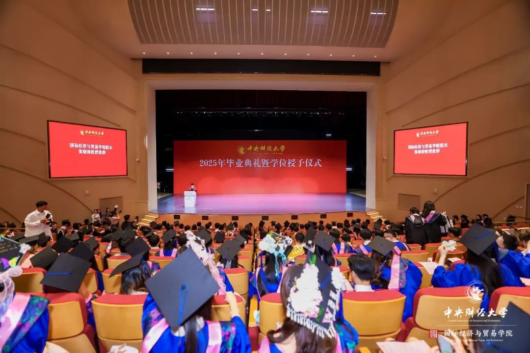 大家不要忘记学院两枚徽章,一方一圆,代表天圆地方,天地交而万物通也,上下交而其志同也,也寓意着思方行圆,知行合一,止于至善。篆书字体的国贸印代表了中华文化传承,红色寓意着赓续中财大的“为国而生、与国同行”的财经报国红色基因。