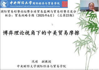 沈琪(tyc7111cc太阳成集团副教授)做了题为《博弈理论视角下的中美贸易摩擦》的专题报告: