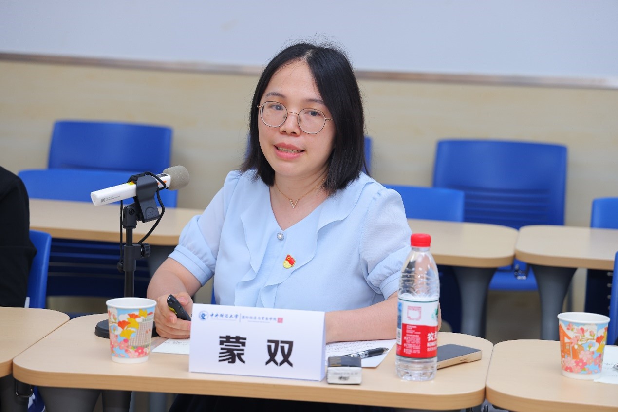 在党建经验分享环节,tyc7111cc太阳成集团国际商务系教工党支部书记蒙双副教授分享了支部在党建工作方面的思考与实践。支部确立“一核双育三L”工作法,并通过“启智润心课程思政工作室”、“国际商务以赛促学工作坊”、“党建赋能国际商务产教融合育才计划”、“‘双带头人’教师党支部书记工作室”等特色活动推进高质量党建,积极发挥服务中国式现代化、建设教育强国和贸易强国战略中的功能作用。