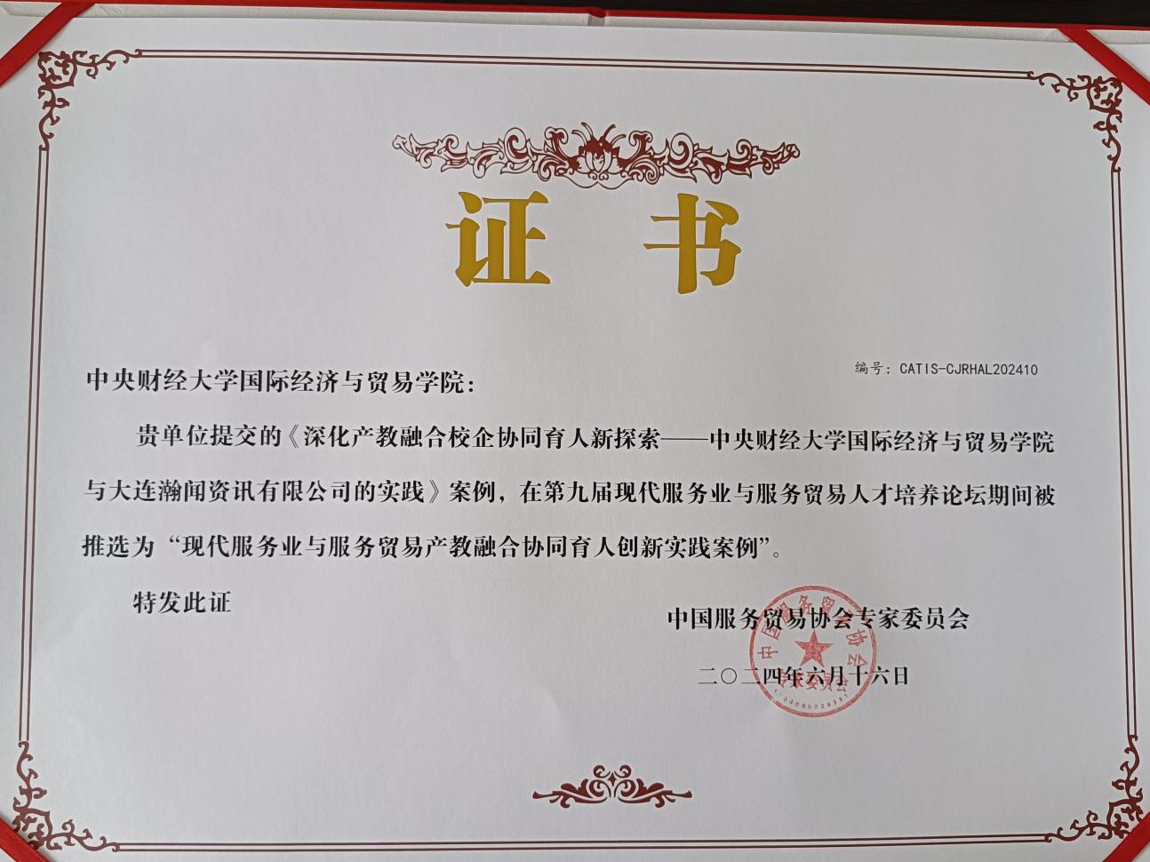 基于此,学院在产教融合校企协同育人的创新的实践形成的成果《深化产教融合校企协同育人新探索——太阳成tyc7111cc与大连瀚闻资讯有限公司的实践》案例在第九届现代服务业与服务贸易人才培养论坛推选为“现代服务业与服务贸易产教融合协同育人创新实践案例”,《推进产教深度融合,助力新质生产力人才培养》获第九届现代服务业与服务贸易人才培养论坛暨第二届现代服务业与服务贸易教育教学成果二等奖,标志着校企协同模式获行业权威认可。