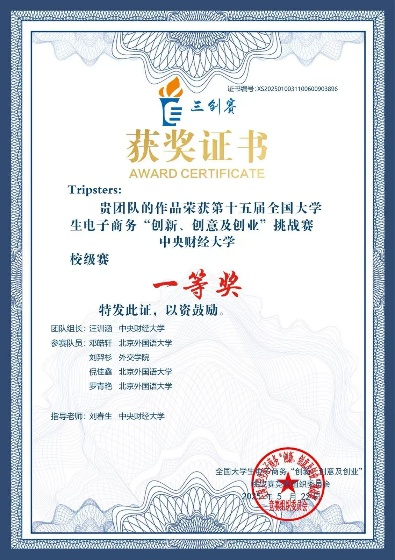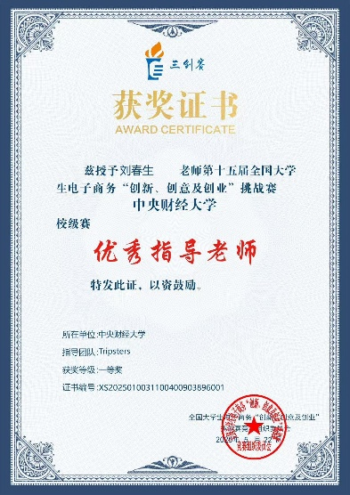 近日,由我院现代化教学创新中心主任刘春生副教授指导的“Tripsters”跨校团队,在第十五届全国大学生电子商务“创新、创意及创业”挑战赛(以下简称“三创赛”)与第四届“京彩大创”北京大学生创新创业大赛中双双获奖,刘春生副教授获得三创赛优秀指导老师奖,成为我院深化创新创业教育、推进人才培养模式改革的又一重要成果,彰显了我院在产学研融合育人领域的扎实成效。