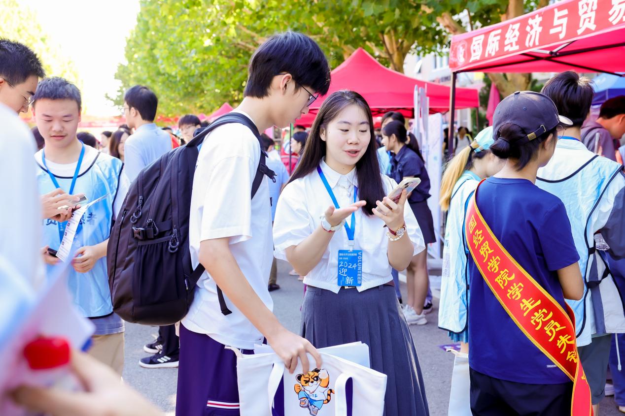 2024 年 8 月 29 日,国经贸学院2024级本科生迎新火热进行中。这里有着意气风发的笑脸、温馨亲切的问候以及无微不至的贴心服务,热情拥抱来自五湖四海的278位莘莘学子。新生们怀揣着对未来的无限憧憬与梦想步入了中财大的美丽校园。青春的朝气在这里如同绚烂的向阳之花,肆意绽放,蓬勃生长。他们将在这片学术的沃土上,汲取知识的甘霖,培育梦想的种子,绽放出更加耀眼、充满活力的光彩,共同书写中财大国贸人的生动故事。