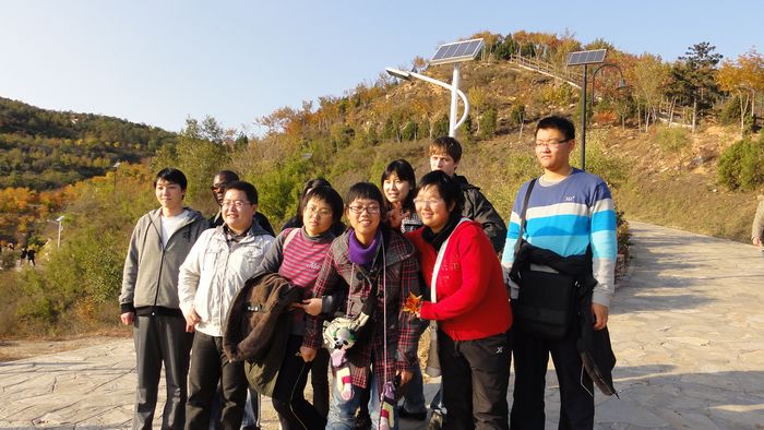 10月的下旬正值北京的深秋,满山的枫叶呈现“红于二月花”的壮观景象。满地的菊花色彩纷呈,素有阳光溪水小桥人家的景致。也同样点燃了同学们游玩和语言交流的兴致。在枫树下的合影留念,文化的差异、阅历的不同在这里渐渐消弭,处处洋溢着友谊的温暖。来自不同地域,不同肤色的朋友们热情的交流着中国文化。共诉中财“忠诚团结”的校训。
