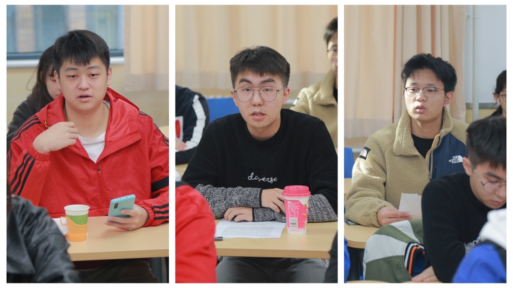 本科生代表表达了职业生涯该如何规划的疑惑。对此,老师提出了几点建议:同学们可以积极参与创新创业、暑期社会实践等活动,提升综合实力;积极参与企业进校园活动,了解企业内部的结构与知识,进一步了解社会。同时老师们也指出,在同学们明目标、思规划时,必须要把小我放到大我之中,在实现自身价值的同时也要思考自己对祖国复兴事业的贡献。