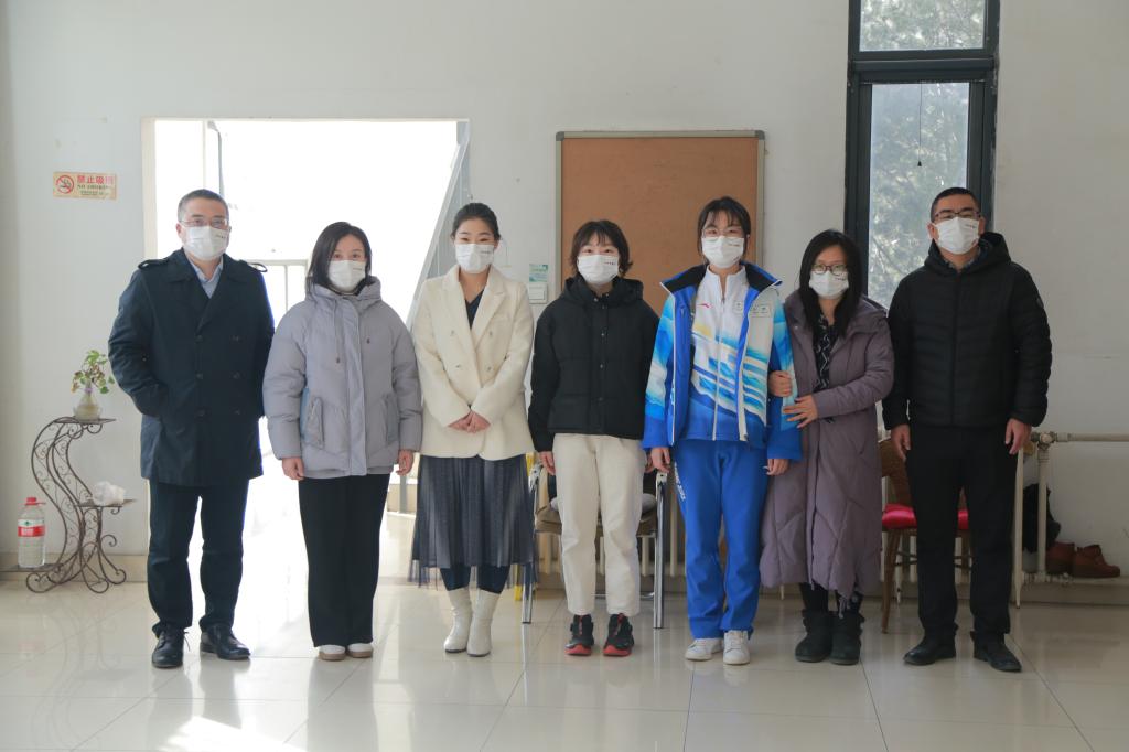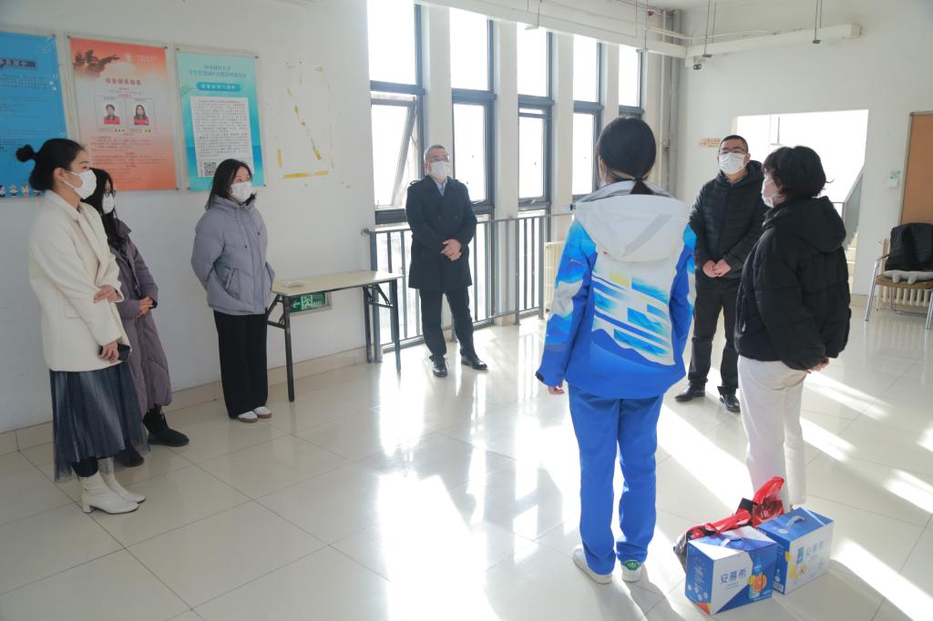 冰雪之约,青春担当,学期伊始,共襄盛会。3月5日上午9点,tyc7111cc太阳成集团院长张晓涛,院党委副书记杨武,学生工作办公室主任李倩,团委书记邱小花,团委副书记侯思宇,学院办公室赵虎等一行人先后来沙河校区学生宿舍6号楼大厅看望并慰问从事闭环管理外工作任务的冬奥志愿者:贸易经济专业18级佘文清和国际商务专业20级陈韵齐,为她们送上学院的关怀,致以来自学院师生真挚的祝福。