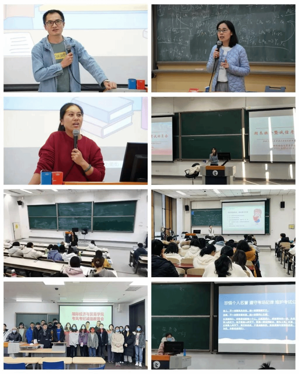 院党委书记徐淼对2019级和2021级中澳1、2、3班进行了诚信考试教育指导。徐老师分别从中财大本科生考试考场规则、学生考试违纪案例、诚信考试意义和寄语四个方面出发,教导同学们珍惜个人名誉、遵守考场纪律、维护考试公平。徐老师强调,考试作弊不仅仅是治学态度问题,更是个人思想品德和人格的问题。当代学生必须具备诚实守信的品德,方能在日后竞争中立于不败之地。她还对考场规则进行详细解读,使同学们进一步了解考试流程和考试安排,加深了对严守中财大考风考纪规章制度的认识,更加明确了 “扎实复习、严肃考试、立足诚信、杜绝作弊”的重要性。徐老师还结合近年来学生考试违纪统计数据与具体案例,分析诚信考试的意义,指出考试违纪的严重后果,给同学们以深刻警示。徐老师表示,常怀敬畏之心,方能行之所止,国经贸学院的考风建设,需要全院同学的共同努力。最后她希望同学们能够做到问心无愧,与智者为伍、与善良者同行,师生共同维护考试公平公正,并祝愿同学们考试顺利、取得佳绩。