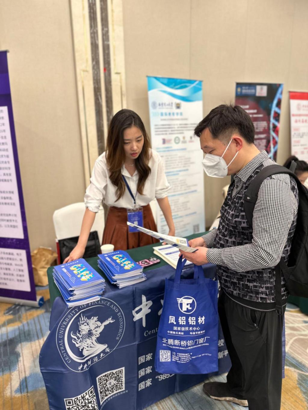 4月13日,学院国际合作办公室主任秦伊伦老师在北京辽宁饭店参加了由高考宝、新东方国际教育主办的第二届中外合作办学巡展,面向广大考生和家长开展了现场宣讲咨询,全面介绍了项目的基本情况、人才培养特色和优势、招生政策以及近年来招生情况等,为考生及家长解答有关问题,扩大了我校中外合作办学项目的社会影响力。