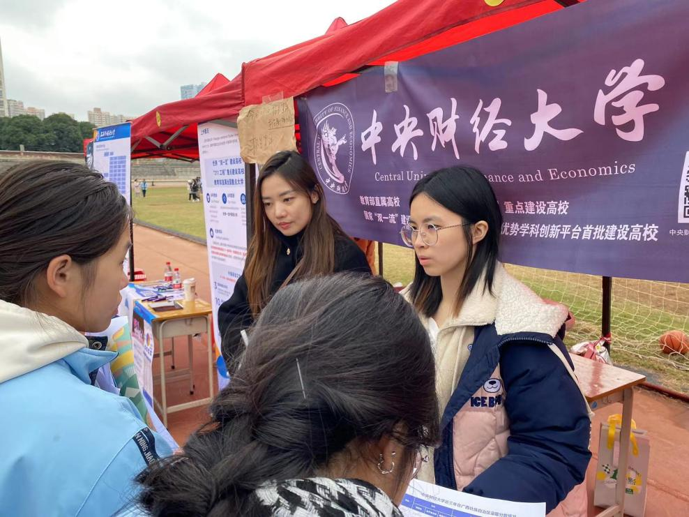 12月17日下午,招生团队前往南宁三中青山校区开展咨询活动。秦伊伦老师,吕科睿同学和李乐瑶同学从学校优势、专业设置、就业前景和历年录取等方面一对一答疑解惑,咨询现场气氛热烈。