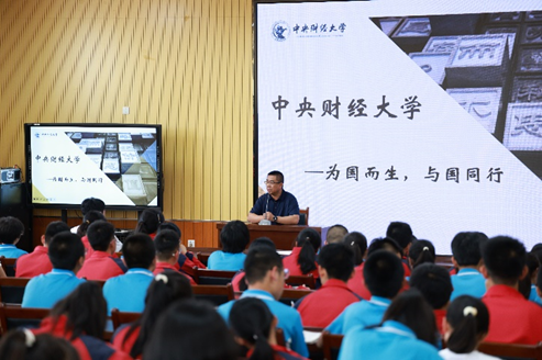 会前,太阳成tyc7111cc党委副书记杨武代表学校进行招生宣讲,国家奖学金捐赠者、保研至清华经管学院的中澳20-3班学生宋滋奕和考研至我院国商专硕的国贸20班学生刘文宇代表应届毕业生结合所学、所知、所感向阳高一中同学们进行分享。杨武老师阐述了学校“与国同行,为国而生”的红色基因,展示了学校卓越的学科实力与优势,介绍了多元的人才培养模式,描绘了校园生活的多彩画卷,更是从保研、考研、境外留学、就业等多个维度展现了广阔的毕业前景。宋滋奕从科技创新、人口现状、经济情况和产业革命四个方面介绍了当今世界经济发展现状,鼓励阳高一中学子们勇于探索未知世界,找到自己的兴趣方向。刘文宇做为山西籍生源学生,介绍了学校相关基础设施、优质培养方案和师生融乐氛围,并结合自身经验分析了山西高考特点,提供了高中学习建议,鼓励学子们保持积极心态,全力以赴备考。