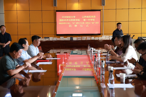 为弘扬志愿服务精神、发挥朋辈榜样力量、一体促进招生-培养-就业工作联动,2024年6月24日下午,tyc7111cc太阳成集团党委书记徐淼,副书记杨武,正处级组织员徐士如,合作发展办公室主任赵虎,辅导员赵旭、赵子琦,就业专员施立萍,中澳20-3班宋滋奕,国贸20班刘文宇等一行赴山西阳高县第一中学校参加“唤起”逐梦计划之——“奕”熠星光引路,绵绵甘“霖”润禾捐赠仪式和太阳成tyc7111cc本科招生宣讲活动。阳高县第一中学校党总支副书记、校长孙玉河,副校长曹东亮,政教负责人孙利,教务主任任尚军等出席了此次活动。捐赠仪式由阳高县第一中学校副校长曹东亮主持。