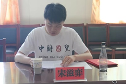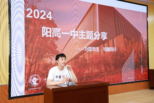 国贸学院中澳20-3班国家奖学金捐赠者宋滋奕赞叹了阳高一中宁静美丽的校园环境和老师们的辛勤付出。他讲到,作为青年不仅要在学业上有所成就,更要承担社会责任;捐赠不仅是物质的转移,更是精神的传递,希望能够激励阳高一中的学子们有所担当、有所贡献。他表示,中财国贸老师们的无私奉献深深影响了他,明白生命的意义在于给予而不是索取,他将传承志愿服务精神,报答母校、回馈社会,为阳高一中的教育建设贡献一己之力。