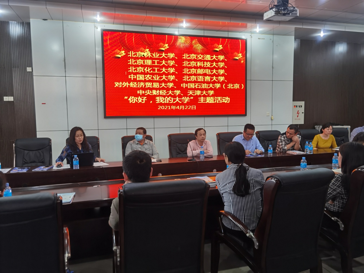 4月22日,招生宣传组接力转战广西桂林开展招生宣传工作。22日下午,招生宣传组与北京十一所高校一同来到广西国龙外国语学校(前身为广西师范大学附属外国语学校),与该校招生与考试办公室主任梁锋、教务处主任兼高三年级组主任唐言江以及部分高三老师进行了座谈。梁锋主任介绍了广西国龙外国语学校的基本情况、办学特色以及近年来在教育教学方面取得的成绩。李瑞琴教授和王立勇教授分别介绍了我校基本情况、此行目的以及我校在广西历年招录情况。双方还就人才培养、自主招生、学科建设、高考改革等进行了交流,表示希望继续加强交流与协作。
