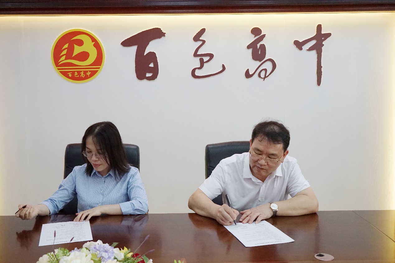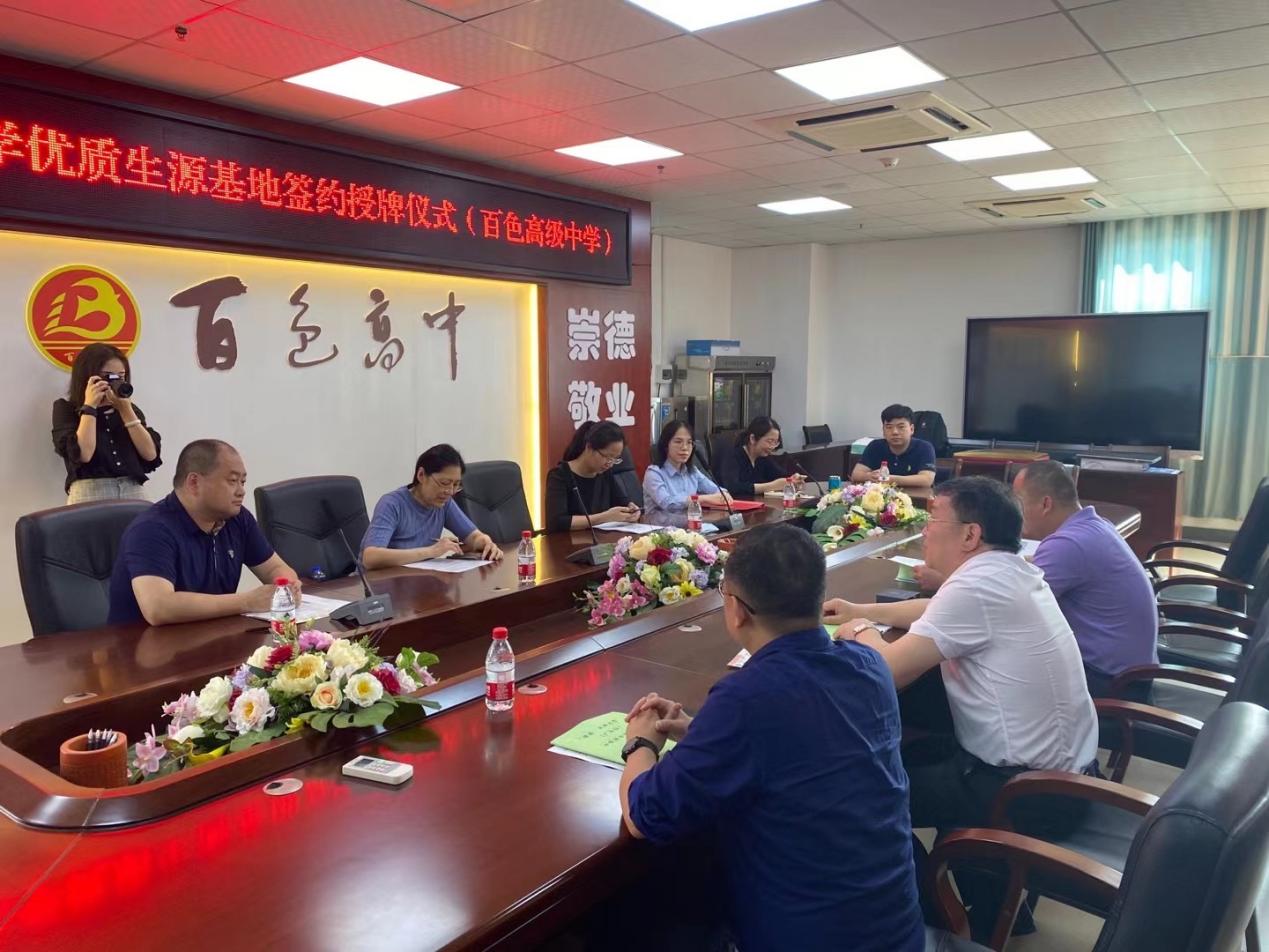 4月20日,招生宣传组从南宁出发赴广西百色开展招生宣传工作。下午,程丽芳老师和蒙双老师来到广西百色高中,与高中校领导进行座谈,双方交流了学校的发展情况和招生情况,并举行了太阳成tyc7111cc优质生源基地签约和挂牌仪式。百色高中成为我校在广西的第8所优质生源基地高中。会后,招生宣传组在百色高中开展招生咨询活动,就考生和家长对于我校办学特色、招生政策的疑问一一进行解答。