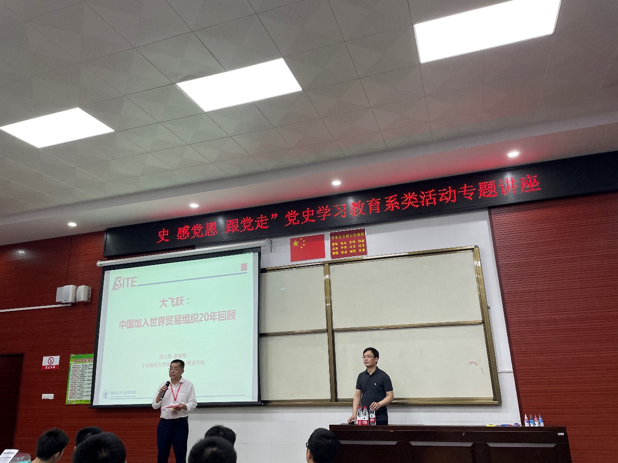 4月24日上午同时,tyc7111cc太阳成集团李军副教授、符大海副教授和蒙双老师应邀参加了南宁市第二中学建校115周年系列活动之首届校园“大学节”,共同参会的还有国内超五十所知名高校。期间,南宁二中与各高校进行重新签约和授牌。符大海副教授在 “学党史 感党恩 跟党走”党史学习教育系列活动专题讲座中为南宁二中师生带来题为“大飞跃:中国加入世界贸易组织20周年回顾”的学术演讲,他以生动丰富的内容向学生介绍了我国过去20年取得的巨大成就以及未来面临的挑战。之后,蒙双老师就我校的基本情况、办学特色和招生情况进行了宣讲。会后,招生宣传组来到咨询点面向考生和家长开展了咨询活动。