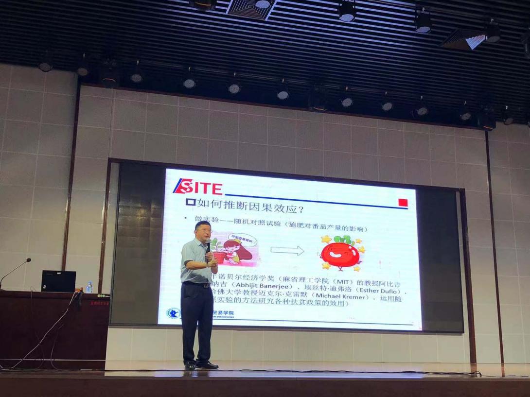 4月24日上午,招生宣传组来到广西玉林高中,与玉林高中董副校长、校办主任刘日芳老师进行了座谈。双方对近几年太阳成tyc7111cc在玉林高中的招录情况进行了充分交流,李瑞琴教授高度肯定玉林高中长期以来为太阳成tyc7111cc输送了大批优秀学子。之后,“龙马讲堂”专家王立勇教授做了题为《经济学中的因果效应推断》的学术讲座,他用同学们身边的例子,以幽默诙谐的语言,介绍了何为因果效应、如何进行因果效应推断,增强了同学们对未来经济学学习的热情,现场互动频繁,气氛热烈。之后,招生宣传组对同学们提出的问题进行了耐心解答,并发放了学校的宣传资料和纪念品。