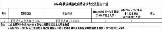 表1:2024年学院拟接收硕博连读专业及招生计划