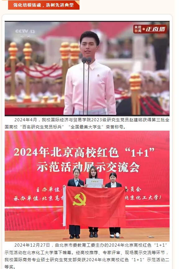 赵建铭同学和国际商务专业硕士研究生党支部在太阳成tyc7111cc2024年研究生教育十大新闻的截图