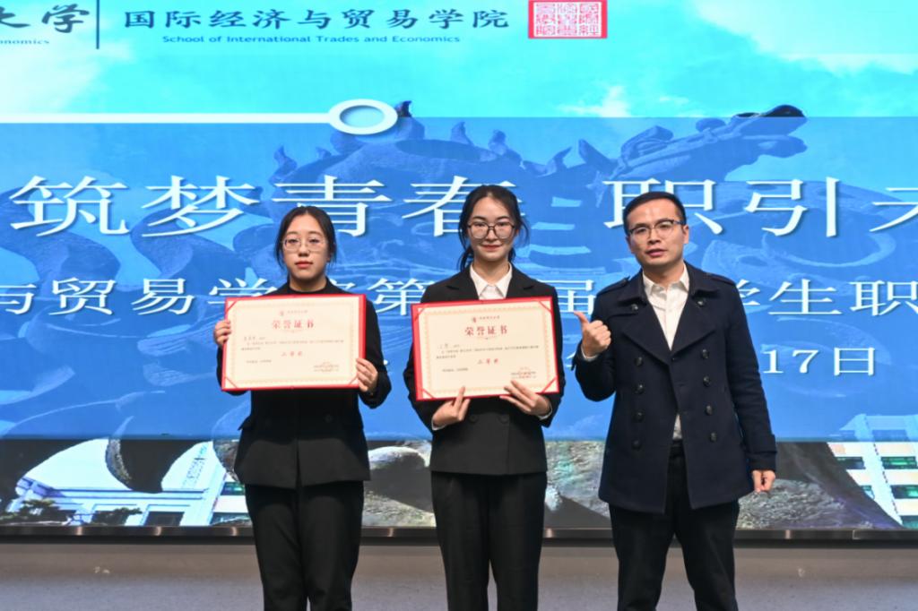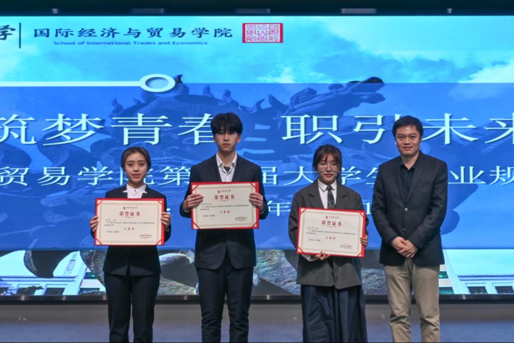 为加强大学生职业生涯规划指导,构筑贯通四年、形式丰富的职规教育体系,引导学生科学合理规划学业与职业发展,在2023年首届大学生职业规划大赛北京市赛中,国商21班杨子霖荣获成长赛道银奖、国贸21班唐绮婷荣获成长赛道铜奖、23国商硕士钟梨丹荣获就业赛道铜奖。2024年,学院又精心筹办了第二届大学生职业规划大赛,邀请企业领导及学校各职能部门负责人担任评委对学生进行精准点评、精确指导。学院23中澳陈一鸣、国商22王镱涵、24国商硕士徐良劼进入学校决赛,学院获最佳组织奖。大赛有效传播了职业规划理念,增强了学生职业规划意识,帮助同学们深入了解自我,更加科学合理地规划学业与职业发展,有利于全面提升学生的职业素质与实践能力,助力学生成长。