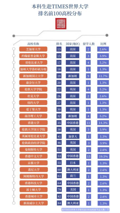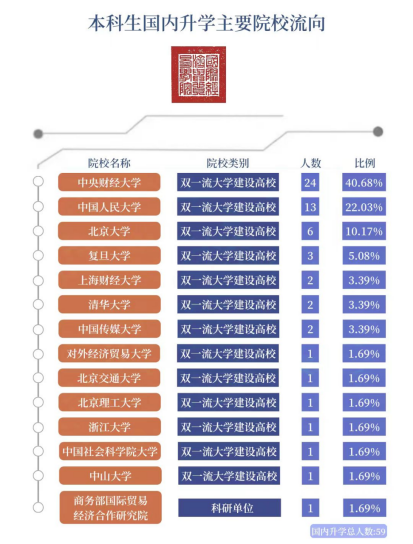 截止2024年8月31日,2024届总体毕业去向落实率为96.38%。本科毕业生中落实就业去向197人,毕业去向落实率为97.04%,本科深造率为70.93%。其中,国内升学59人,占本科毕业生总人数的29.06%,均去往双一流高校及知名科研单位;出国(境)留学85人,占本科毕业生总人数的41.87%,其中77人去往泰晤士世界大学排名前100高校就读。