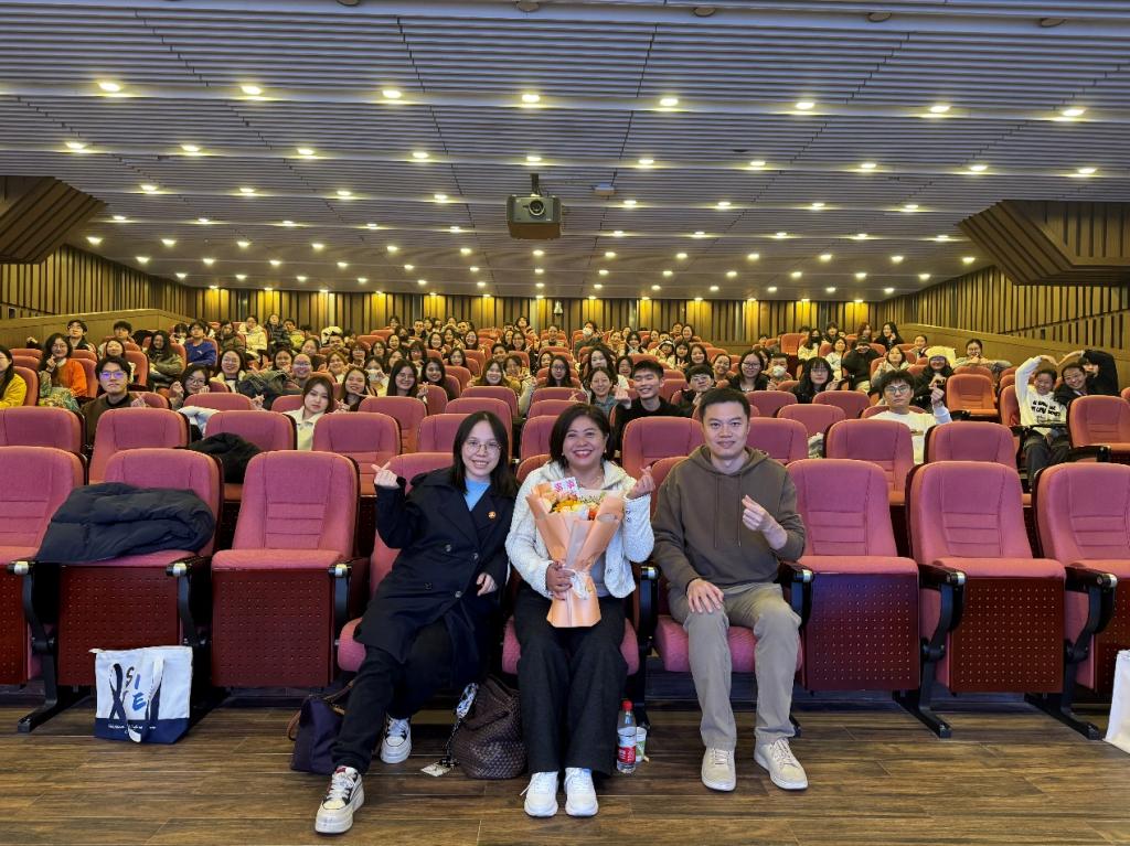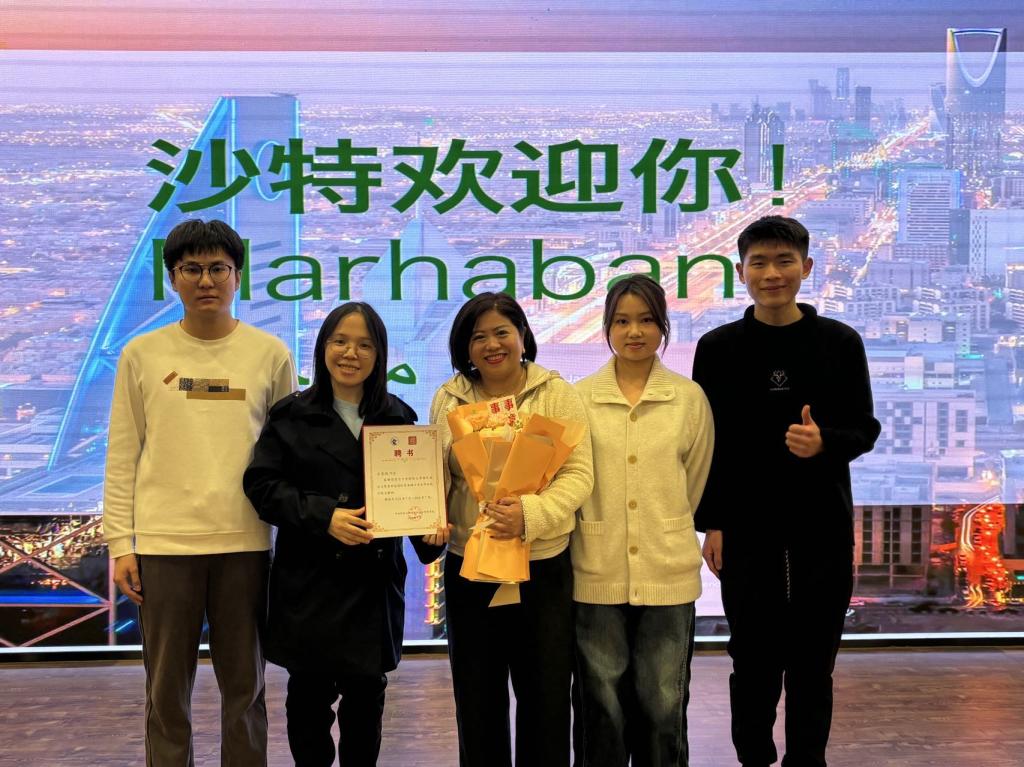 之后,万安凤副总裁从经济、社会文化与商业洞察的视角介绍了在沙特成功落地业务的经验与思考。她从“沙特市场概览、投资机会及大项目简介”、“关于沙特的一些迷思及业务落地须注意事项”、“如何成为一名优秀的国际商务人才”以及“利雅得的生活花絮分享”四个方面展开分享。她强调,国际商务人才应具备扎实的专业知识、开放的心态与跨文化沟通能力;构建本地化团队和建立深厚的关系网络是开拓中东市场的关键所在。面向未来,她呼吁有志于国际商务的学生和从业者主动走出国门,将自身发展与“一带一路”倡议紧密结合。只有以谦逊和专业态度拥抱不同文化,才能在全球化浪潮中把握机遇。她期待更多复合型人才加入国际舞台,共同推动中沙经济合作及全球化发展迈上新台阶。
