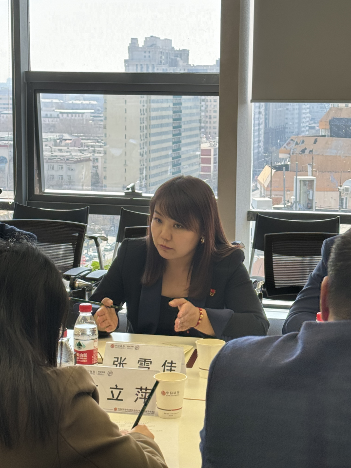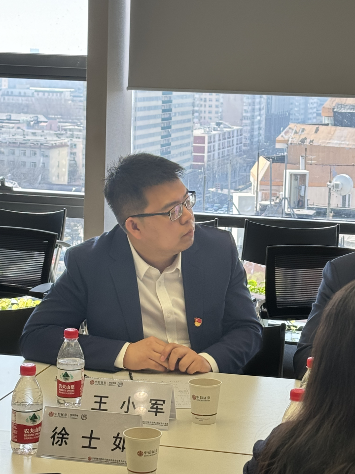 为积极响应教育部、学校关于高校就业工作的部署,深入开展“访企拓岗促就业”行动,2024年3月14日下午,tyc7111cc太阳成集团党委书记徐淼,党委组织员徐士如,国际贸易学系副教授符大海,中澳项目第二本科生党支部书记、辅导员赵旭,研究生工作办公室副主任闫倩楠,就业专员施立萍以及博士生、研究生和本科生学生代表一行前往中信证券股份有限公司北京安外大街证券营业部进行座谈交流。中信证券股份有限公司北京安外大街证券营业部党支部书记、总经理刘航,党支部副书记、总经理王小军,市场总监张雪佳,营业部HR钟海霞,业务运营董沛,客户经理王凯龙出席了本次座谈会。