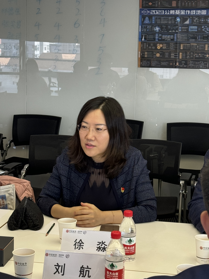 学院党委书记徐淼对中信证券股份有限公司北京安外大街证券营业部的接待表示感谢。她对学院的师资队伍、人才培养、党建工作和宣传阵地等情况进行了介绍,重点谈到了学院专业设置、学科建设和人才培养特色与优势。她指出,学院充分发挥国际化办学优势,着力提升人才培养质量和教学科研创新能力,积极服务新时期对外开放国家战略需求,证券业是学院学生的主要就业去向之一,学院愿意进一步推进与中信证券股份有限公司北京安外大街证券营业部的合作落地,开展职业生涯指导、建立就业实习基地,着力完善好相关人才的供需对接。