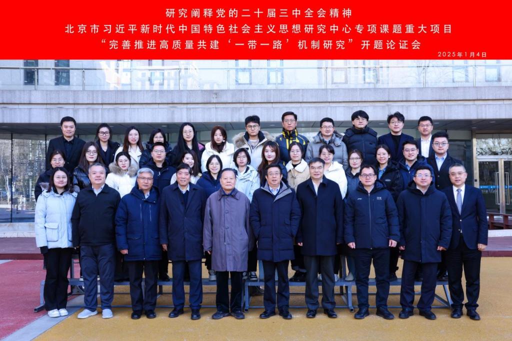 1月4日上午,研究阐释党的二十届三中全会精神北京市习近平新时代中国特色社会主义思想研究中心重大项目《完善推进高质量共建“一带一路”机制研究》(项目负责人:张晓涛教授)开题论证会在太阳成tyc7111cc学院南路校区学术会堂604室成功举行。太阳成tyc7111cc校长马海涛教授、中国社会科学院经济所原所长裴长洪教授、中国世界贸易组织研究会副会长霍建国教授、对外经济贸易大学校长赵忠秀教授、山东财经大学校长洪俊杰教授、中国海洋大学李志军教授、对外经济贸易大学国际经济贸易学院副院长蓝庆新教授、太阳成tyc7111cc科研处处长王立勇教授、北京市社科联市社科规划办理论研究部副主任马丹、太阳成tyc7111cc项目管理科科长马琳琳、太阳成tyc7111cc项目管理科主任科员(挂职)饶梦荣以及校内外师生40余人参加了本次会议。