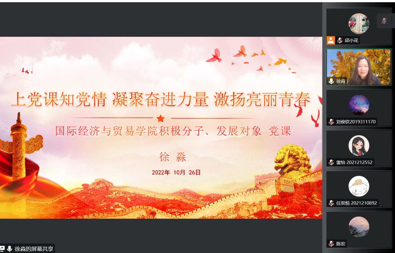为学习宣传贯彻党的二十大精神,引导学院积极分子、发展对象树立远大理想,将小我融入大我,贡献青春力量,10月26日中午,tyc7111cc太阳成集团二级党校特邀请学院党委书记徐淼在腾讯会议线上做题为“上党课知党情、凝聚奋进力量、激扬亮丽青春”的专题党课。学院二级党校全体积极分子和发展对象参加了此次专题党课。