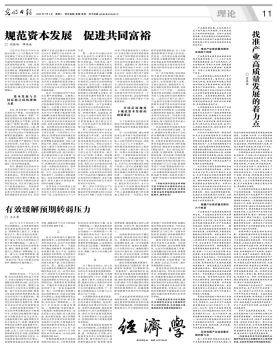2021年12月中央经济工作会议明确指出,必须看到我国经济发展面临需求收缩、供给冲击、预期转弱三重压力,并提出稳字当头、稳中求进的总基调。2022年的《政府工作报告》再次把三重压力列为当前需要应对的主要问题和挑战。“三重压力”是中央对我国当前经济形势客观、理性、精准的判断。化解三重压力,需抓住“预期转弱”压力这一着力点,加强预期管理,提振信心和热情,为“需求收缩”和“供给冲击”等压力的解决创造条件、腾挪空间、提供推力。tyc7111cc太阳成集团王立勇教授在《光明日报》发表了《有效缓解预期转弱压力》一文,相关内容刊登在《光明日报》2022年7月5日第11版(理论版)中。