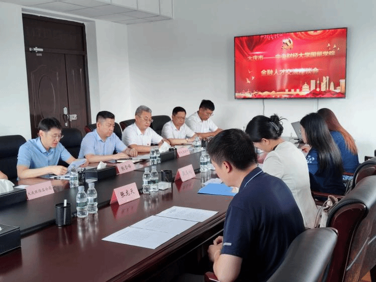 在大庆市金融工作办公室的组织下,学院师生与大庆市金融机构开展了金融人才交流会,围绕“金融业人才招聘、人才培养”主题展开交流。大庆市金融工作办公室副主任张雪峰、中国人民银行大庆市中心支行副行长殷跃峰、大庆银保监分局四级调研员葛毅立、中国农业银行大庆分行行长印国耀、中国工商银行大庆分行副行长咬亮、中国银行大庆分行纪委书记朱枫林、中国建设银行大庆分行副行长谭尚伟、中国人民银行大庆市中心支行征信管理科科员(中财校友)张瑞洋参加了此次会议。会议由大庆市金融工作办公室副主任张雪峰主持。