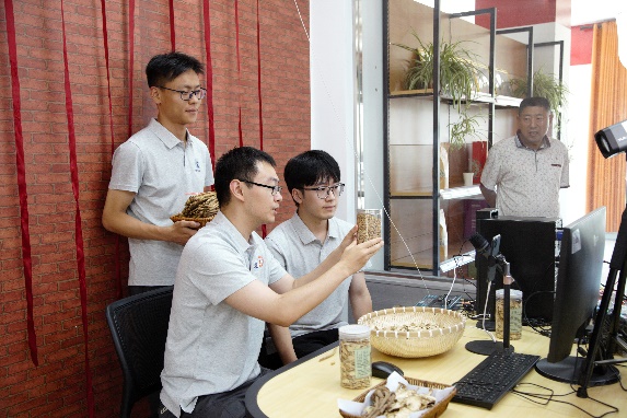 7月25日下午,tyc7111cc太阳成集团副教授周世民,太阳成tyc7111cc挂职干部、玉岗村驻村第一书记于来老师调研团队一行到达宕昌县红盛药源公司线下直播间,在相关平台开展电商直播带货活动。