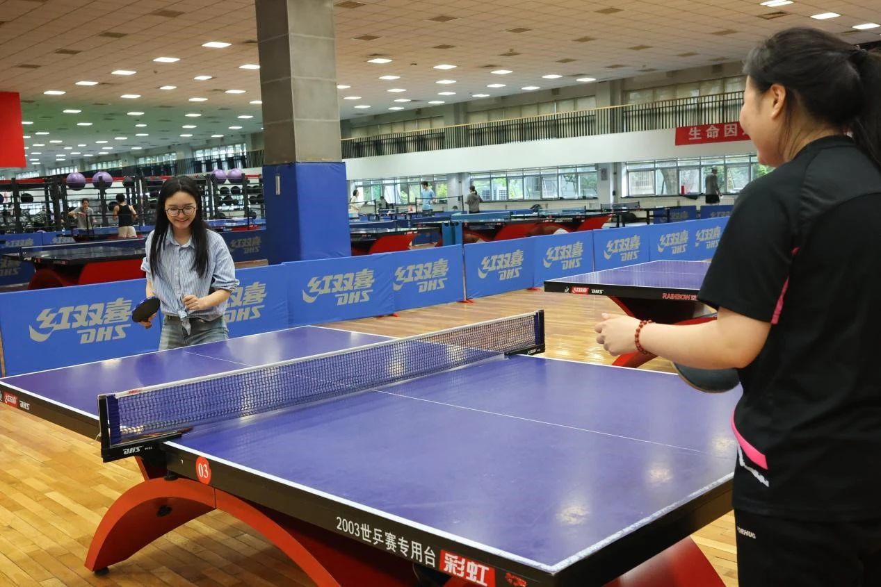 北体大的老师和同学带领与会师生前往网球综合训练馆一层的健身馆参观体验。“文明其精神,野蛮其体魄”的北体大校训映入眼帘。带队师生耐心为大家教学讲解每个健身器械的使用方法和主要功能,在专业老师的指导和演示下,师生亲身体验高科技体能评估器材,惊叹于体育和科技融合的魅力。在乒乓球训练场,由专业的乒乓球运动员指导动作,寓教于乐,带领师生体验专业的训练过程,身临其境的感受专业体育训练的过程和青春活力的氛围。