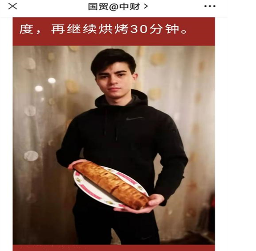 刘意龙来自意大利,因从小对中国文化有着浓厚的兴趣,所以选择来中国深造。刘意龙在校学习期间,积极参加学校的各项活动,连续三年荣获北京市政府奖学金。2021年初,在国际经济贸易学院组织的《贸艺荟/立身“厨”世,“胃”来可期》的厨艺展示中,刘意龙同学制作的《苹果馅儿饼》荣获一等奖。