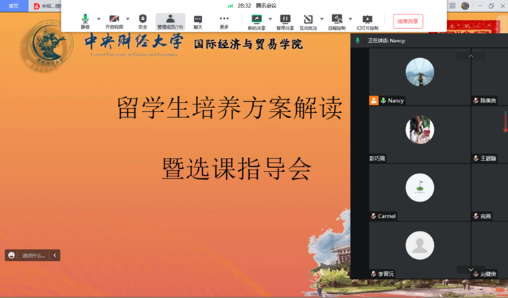 针对留学生教育的专有特点,学院专门开展留学生培养方案解读暨选课指导会,帮助留学生梳理培养方案,解答选课疑问,做好课程规划,为学生有序完成学业提供保障。对于留学生的文化差异,语言困难,学院定期开展网络教学座谈会,了解留学生的困难和需求,获得信息反馈,使得学生“问问有解答,事事有反馈”。为保障留学生全面发展,学院定期开展专门化、常态化的学风教育。在强化教育管理的基础上,学院还高度重视留学生心理健康教育,注重与学生保持密切沟通,多维度、多渠道做好对留学生的人文关怀,进一步提升留学生培养的精细化水平。