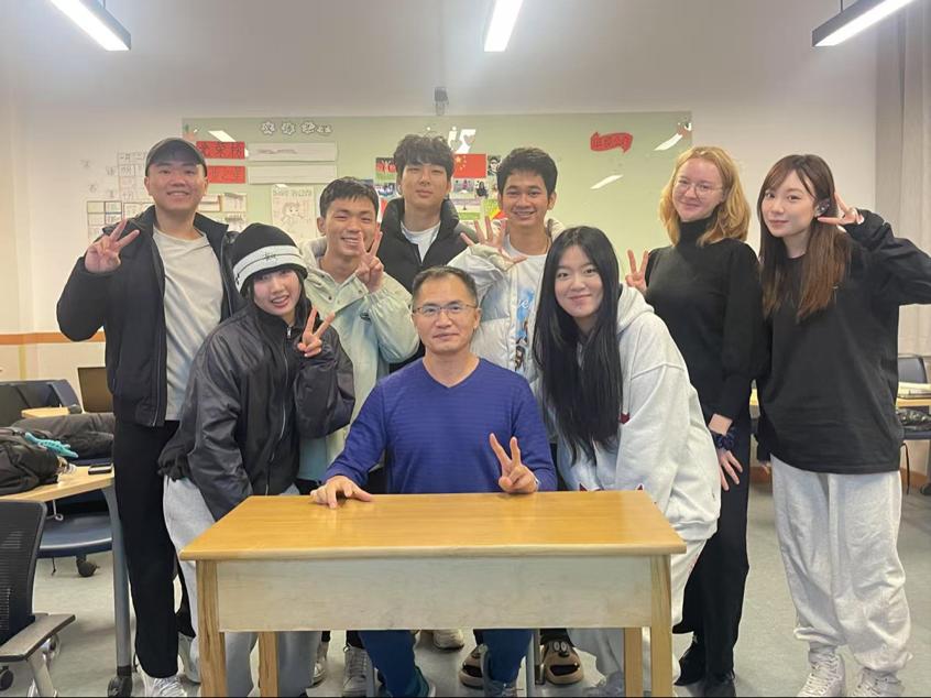 与任课老师合照